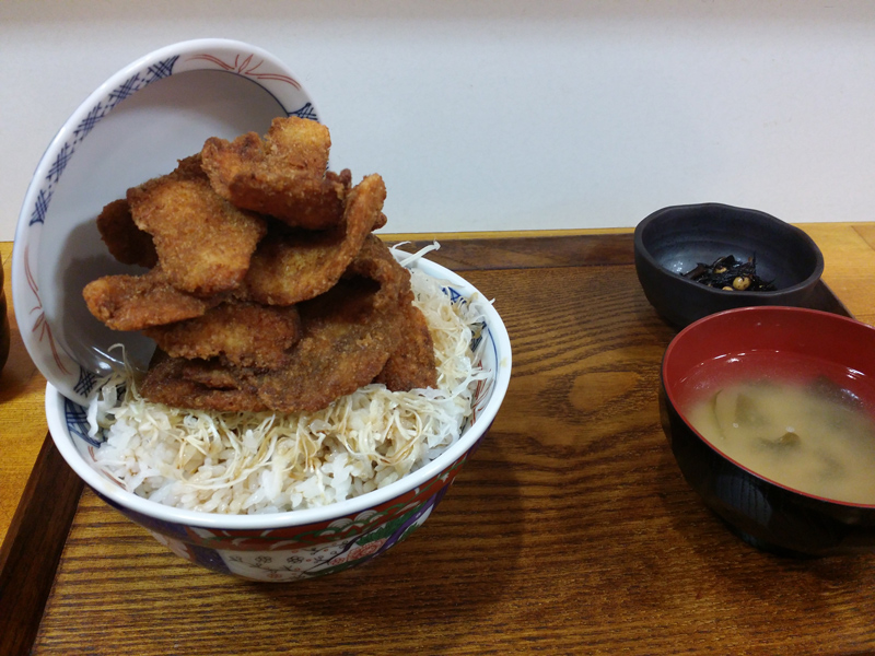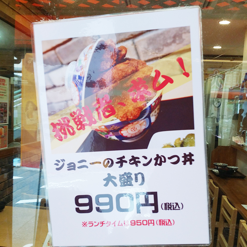 そして別の日にきて、ジョニーのチキンかつ丼(990円、ランチ時は950円)を注文。写真は上からみた図。