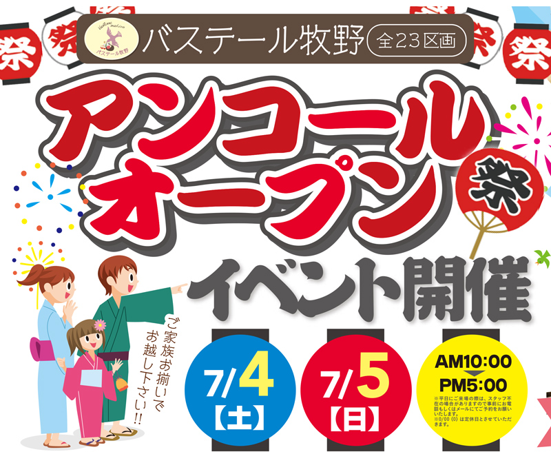 ミハマホーム株式会社の「バステール牧野」で、7/4(土)5(日)にイベントが開催されます