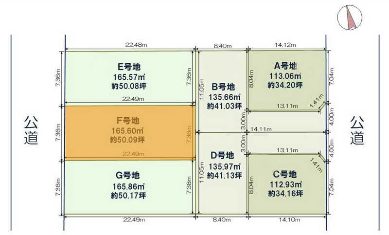 | 土地面積 | F号地 165.60㎡(約50.09坪)売約済 |