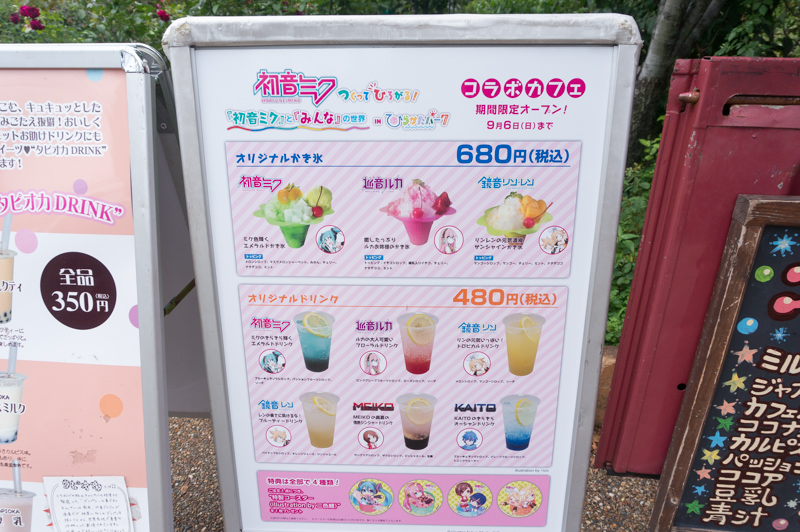 ジュースの名前でもうお分かりだと思いますが、ひらかたパークで行われている『初音ミク(→wikipedia)』のコラボカフェメニューなんです!