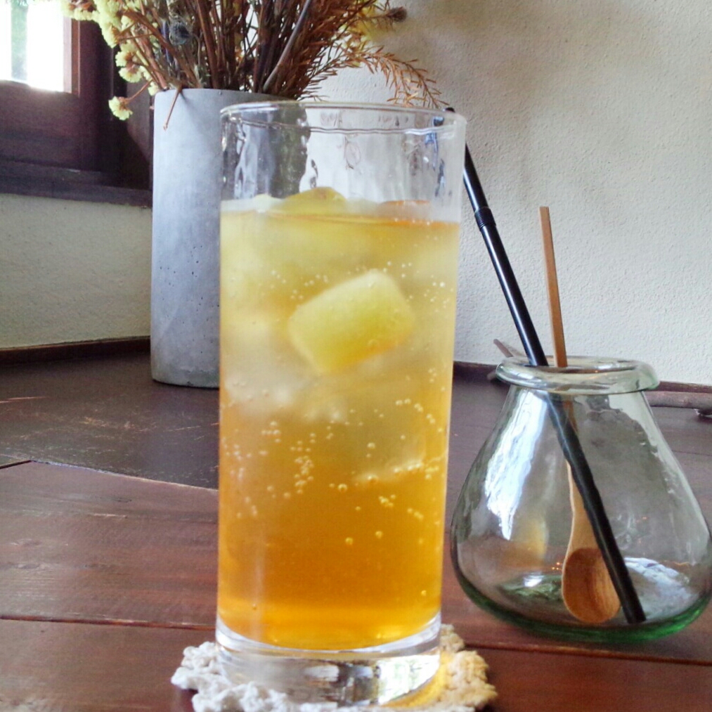 北海道産ルピアレッドメロンの完熟したジューシーな果肉を圧縮したシロップで作ったメロンソーダ。