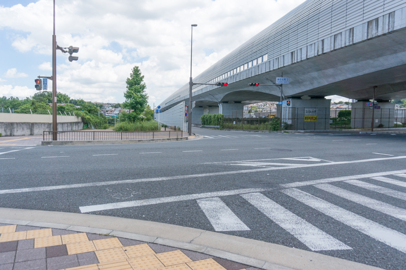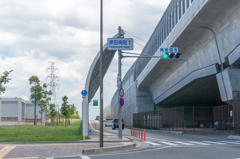 折り返しの際に反対車線側を走るためには、津田南町1の交差点で信号を渡らなければなりません…。でも信号はここだけです!
