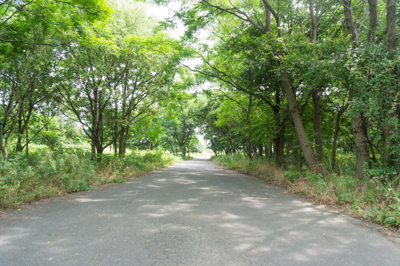 河川敷側には林の間を走れる舗装路もあります。