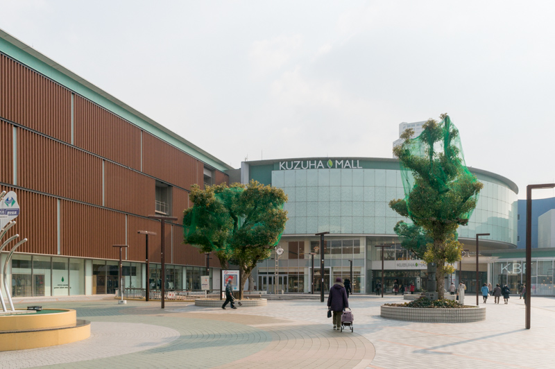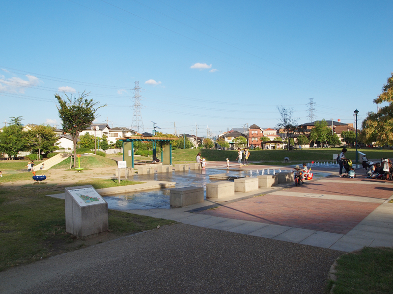 枚方市中央図書館と、その横に隣接する車塚公園。