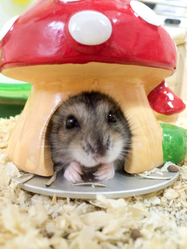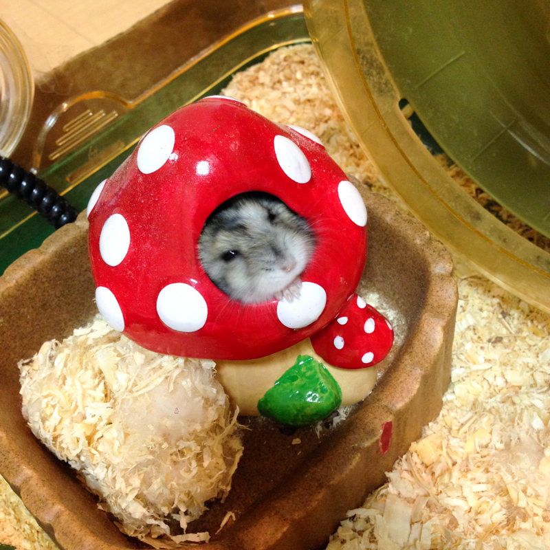 きのこのお家がお気に入りなのでしょうか~いつも入っている感じがしますね