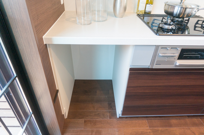 椅子を置いてちょっとひと休みもできますし、目につくところに置きたくないゴミ箱を収めるのにもぴったりの場所ですね!