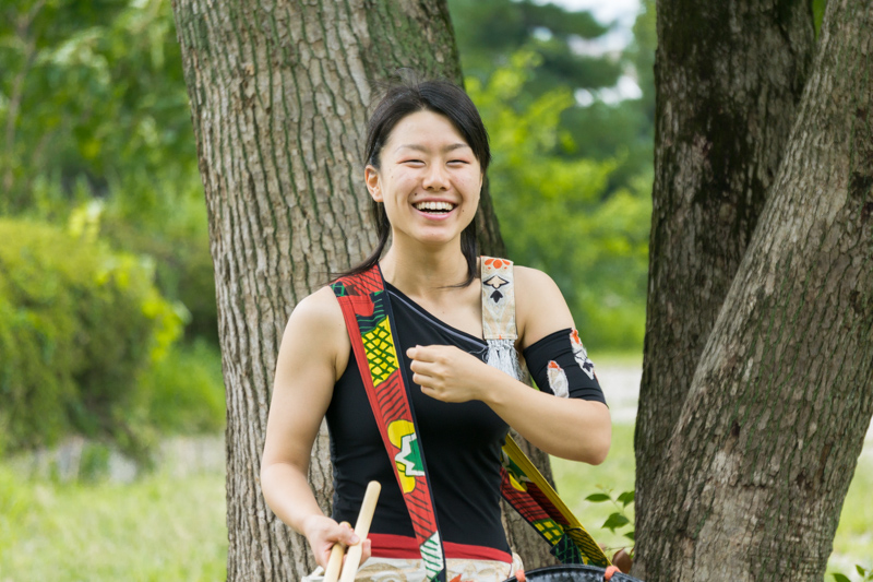 子どもの頃に桜丘の和太鼓の会「さくら」に所属していて、その流れで現在は、和楽器演奏集団「独楽」のメンバーとして活躍する太鼓のプロだそう。