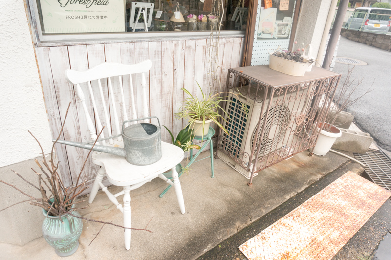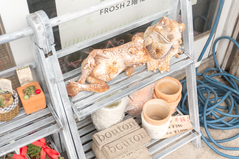 お店の周りにもカエルの置物や可愛い椅子などがおいてあります。
