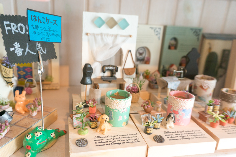 小物は樹脂粘土などでできているそう。ここにもカエルが