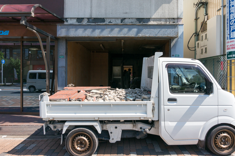 この日は内装の解体作業をしていて、建物の中が見える状態。