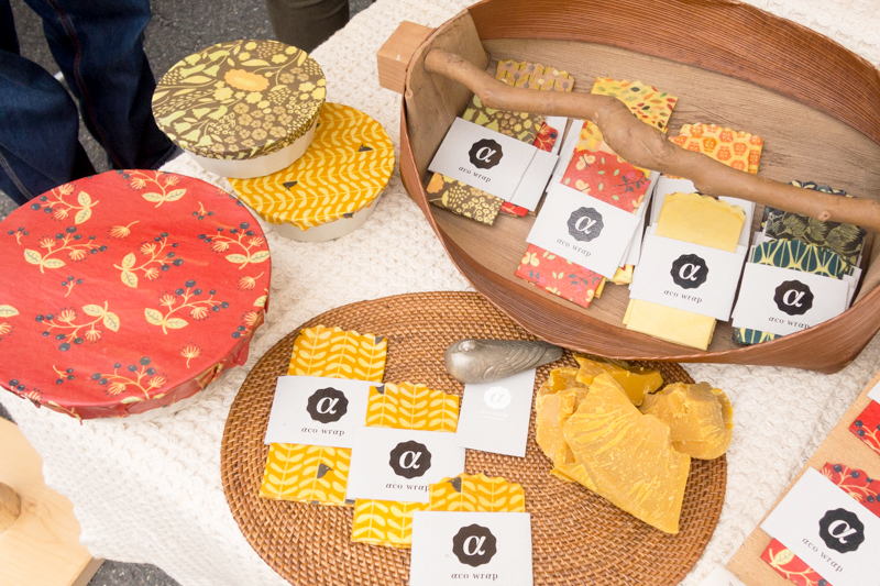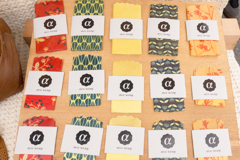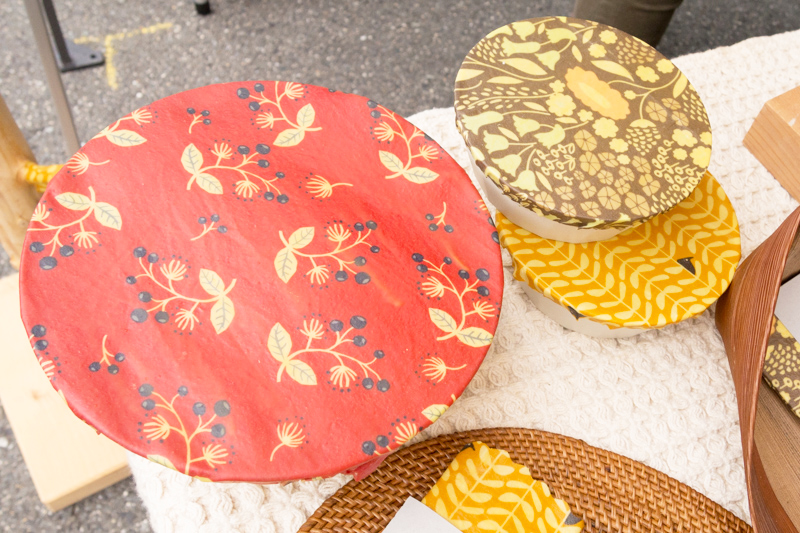 洗って何度も使えるという、みつろう布ラップを販売されているお店です。