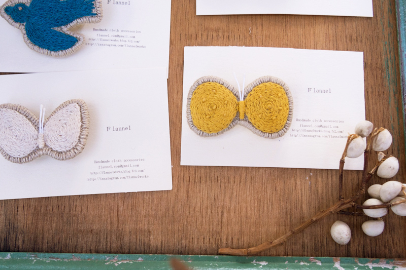 1つ1つ丁寧に作られた刺繍のブローチやアクセサリー。