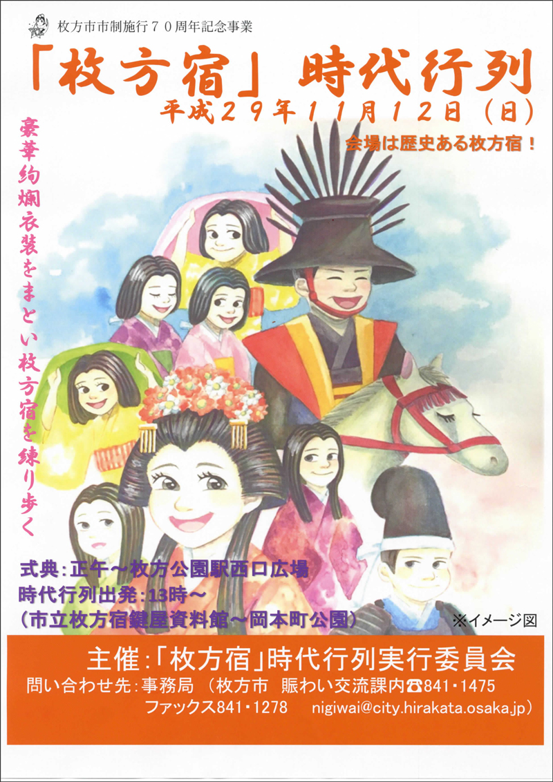枚方市市制施行70周年を記念し、「枚方宿」時代行列が開催されます。
