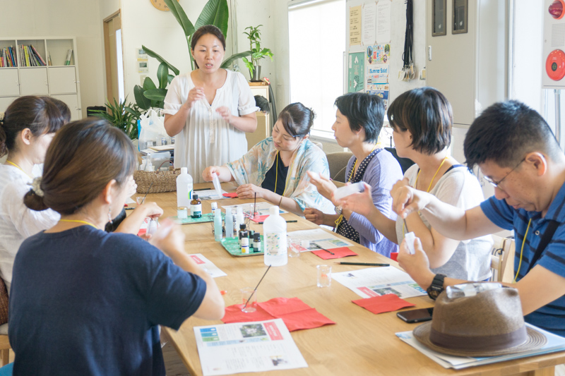 そして、国際資格を持つ「natural treat ~何気ない日々に ささやかな喜びを~」の小寺千晴さんによる身体に優しい虫除けスプレーorアロマジェルづくりのワークショップ。