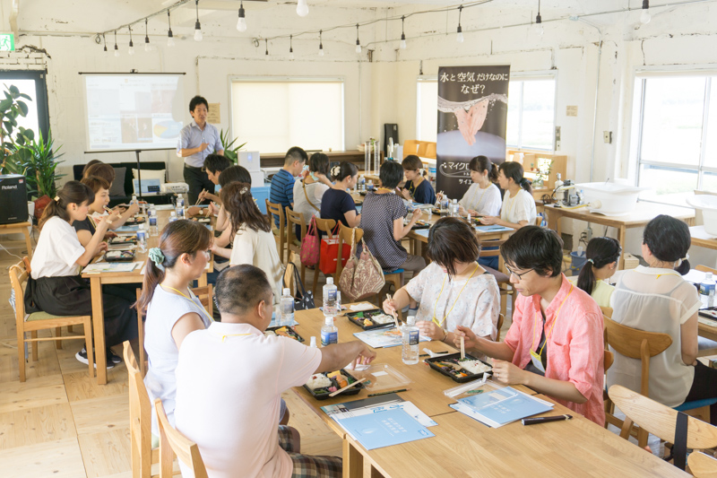 まず、13〜14時は参加者のみなさんにはお弁当を食べながら「日本トリム」の門田(かどた)さんによる「お水のお話」を聞いていただきました!
