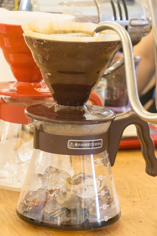 ドリップしたコーヒーが氷がいっぱい入ったサーバーにーー!!