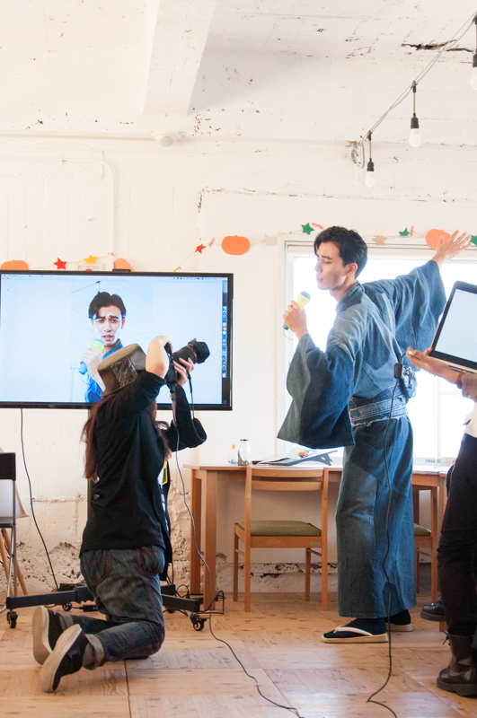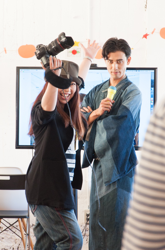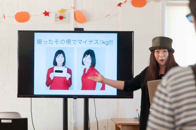 特別な道具は必要ありません。教わったことはその場ですぐ実践!会場中の人がそれぞれスマホで自撮りをするという異様な光景が広がりました。そして突然撮影会がスタート。被写体として登場したのが…