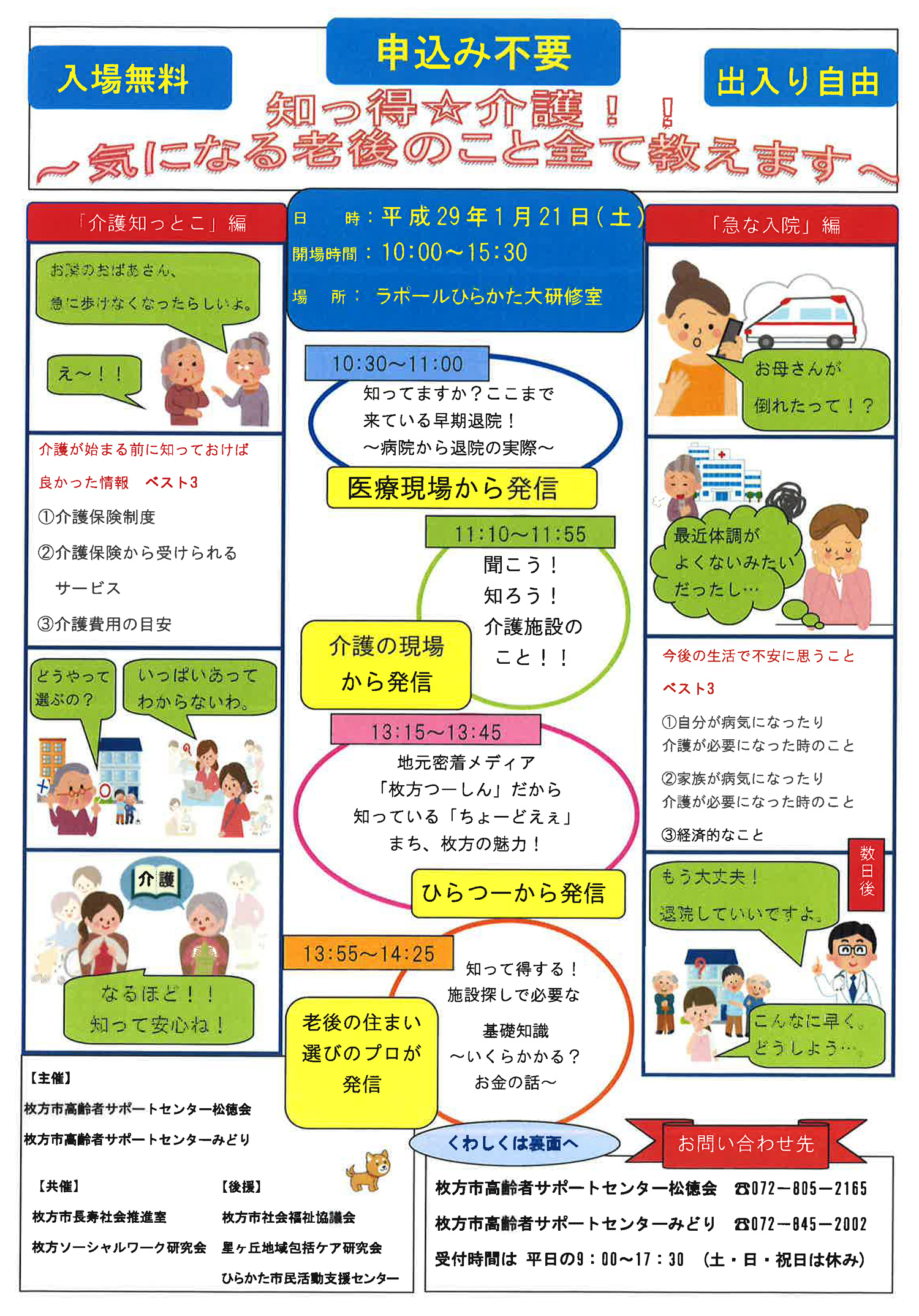 ・知っ得☆介護!! 〜気になる老後のこと全て教えます〜 ラポールひらかた大研修室