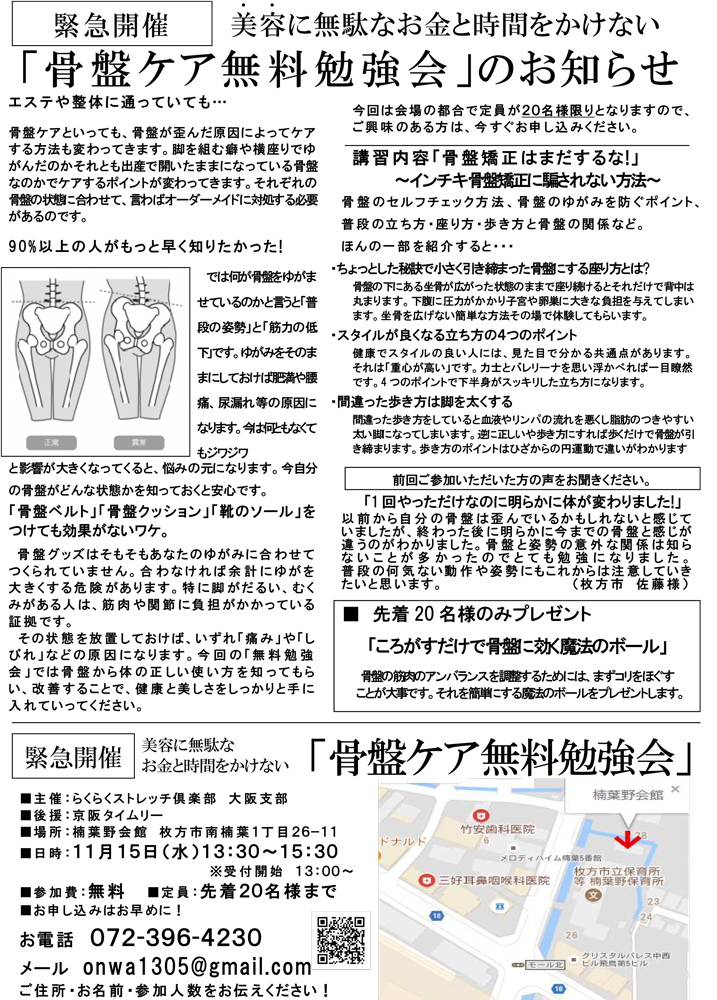・骨盤ケア無料勉強会 楠葉野会館