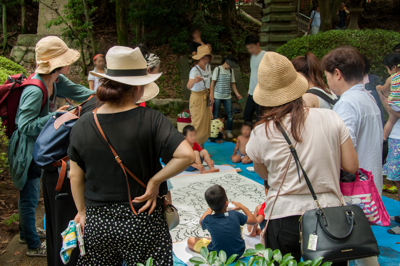 神社の前で涼んでいらっしゃる方も。日陰はずいぶん涼しかったです〜。