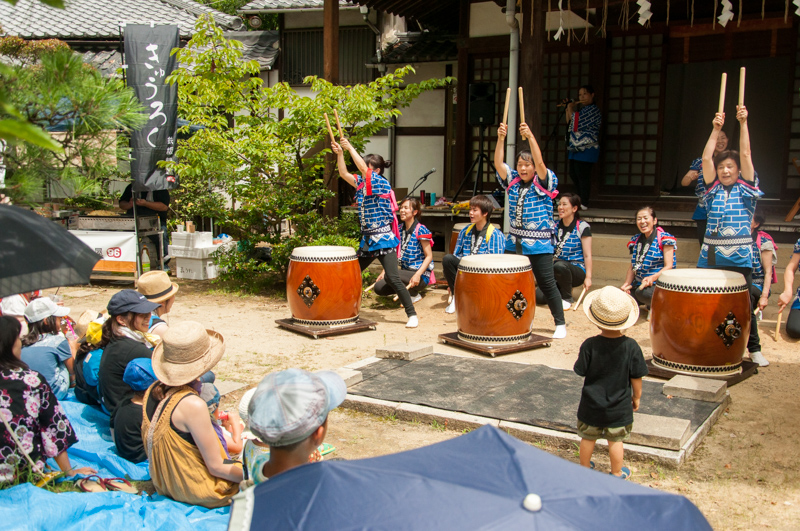 こちらは「和太鼓・民謡サークルどっこい」のみなさん。普段は門真で活動されているそうです。