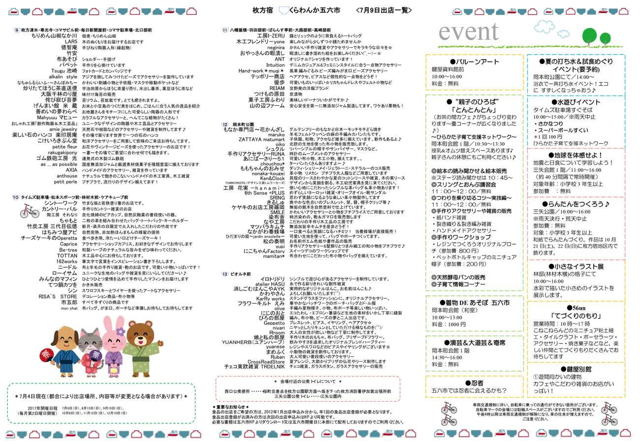 ↓7/9の出店一覧やイベント情報。(クリックで拡大)