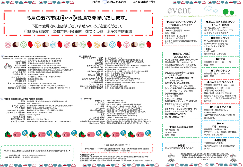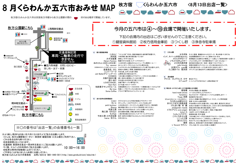↓8/13の出店一覧やイベント情報。(クリックで拡大)