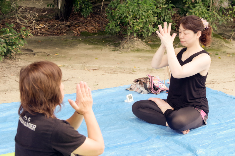【持ち物】あればヨガマット、なければバスタオル・動きやすい服装・フェイスタオル(細長くて首に巻ける長さのもの)・お水(ひらばで100円のペットボトルの販売もあります)