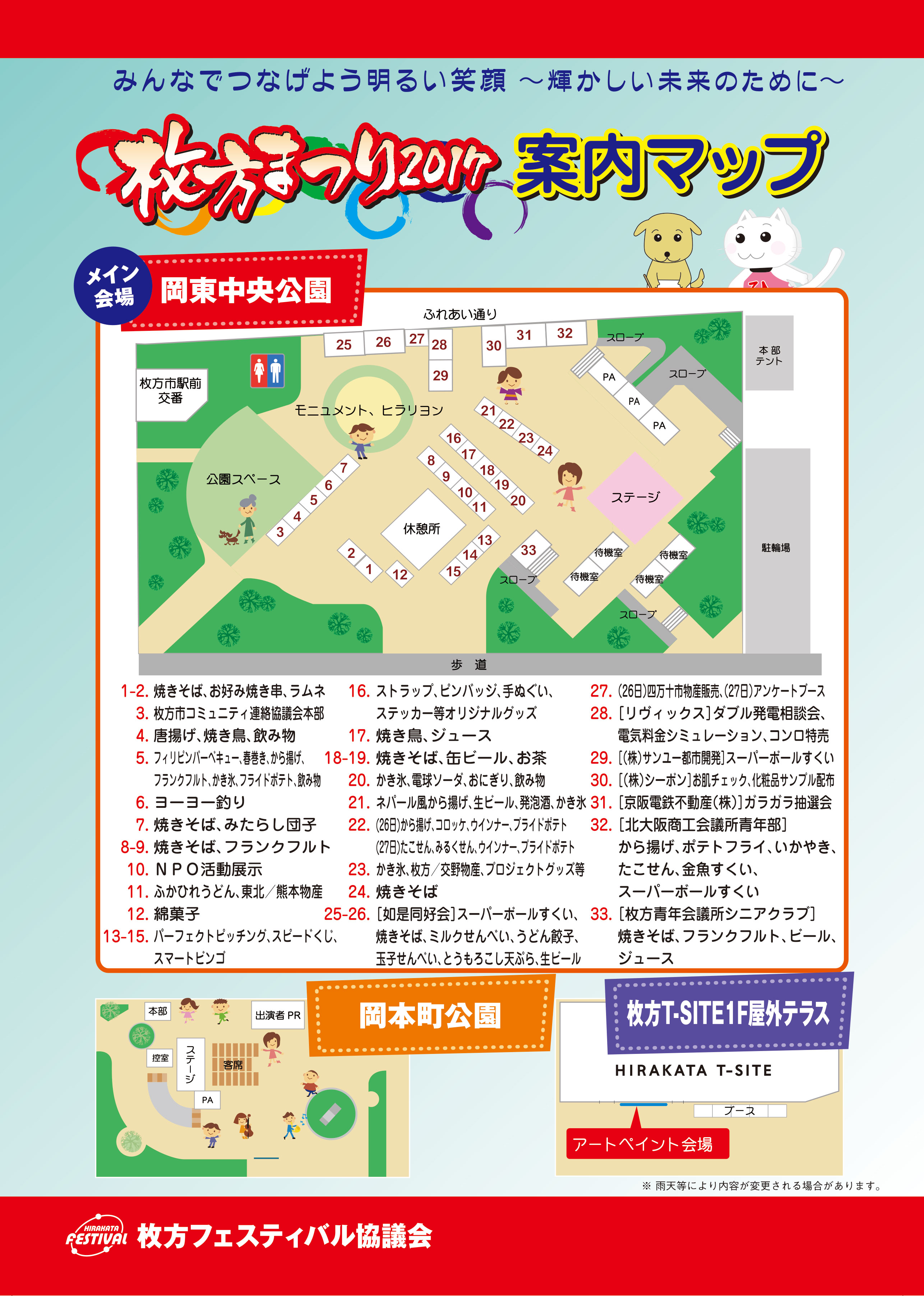 枚方まつり2017のチラシ。T-SITEの壁に自由にペイントができるイベントも。8月26日(土)27日(日)開催