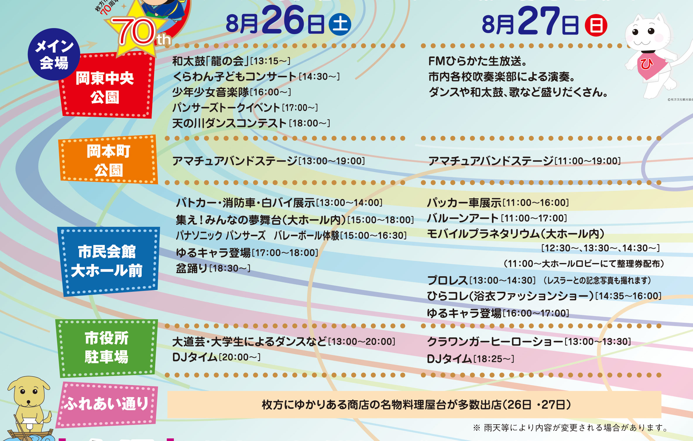 そんなイベント盛りだくさんの枚方まつりは、8月26日は13時〜21時、27日は11時〜19時に開催予定。