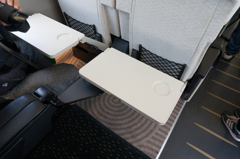 最前列と最後列のシートは、進行方向によっては前に席がなくテーブルがないため、この様な仕様になっているとのこと。