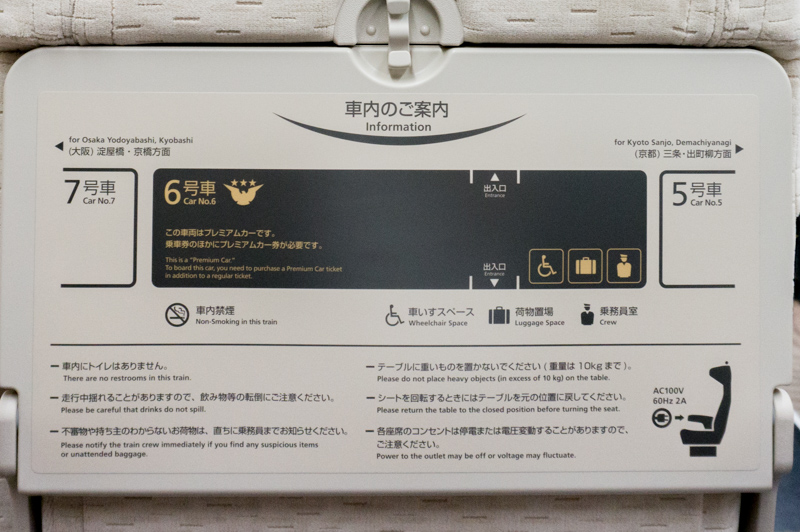 ちなみにシートは京阪電車初のリクライニングシートとなっていて、ご覧の通りプレミアムな時間を過ごすことができます。