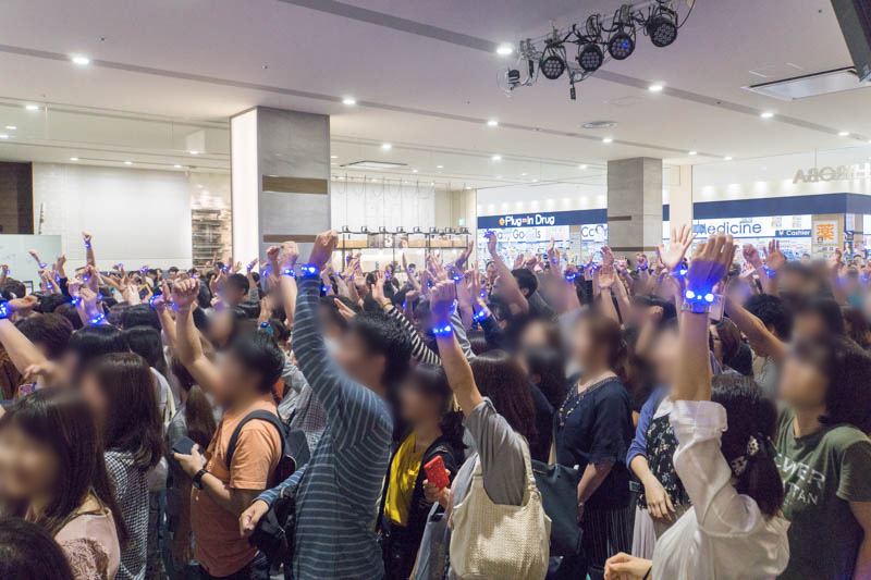 結果は光るリストバンドを装着した観客の皆さんによる、挙手によって決定するシステム。