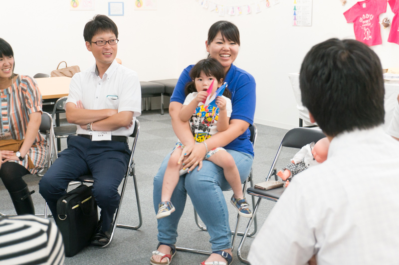 この日はさきほどでてきた「はるか助産院」による「お父さんもベビーマッサージ」も開催されていました。