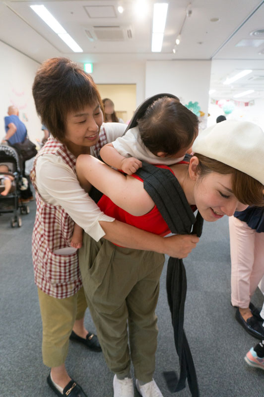 「はるか助産院」が結んで使用するおんぶ紐の実演をされていました!