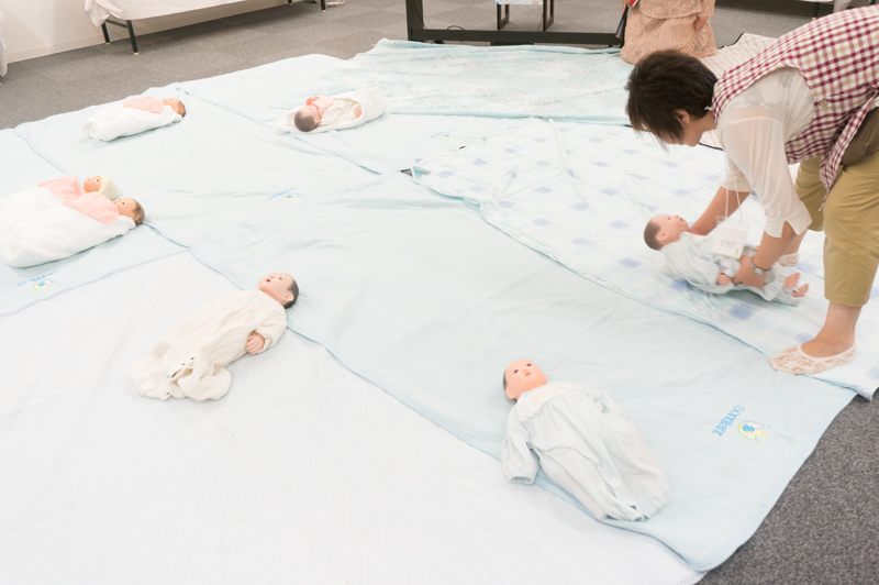 まだ赤ちゃんが生まれていないマタニティさんとパパが参加できるように、お人形がずらりと並びます。
