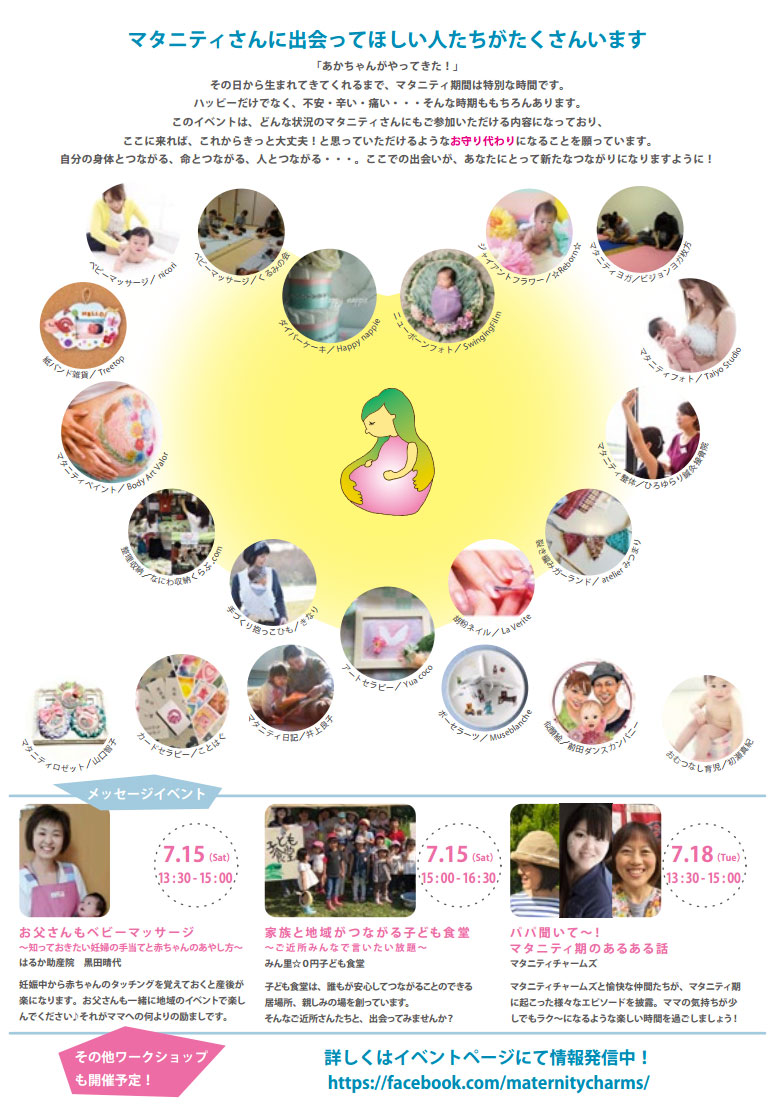 このイベントのFacebookページ「マタニティチャームズ」でも開催中の様子がアップされているので、ぜひご覧くださいね!
