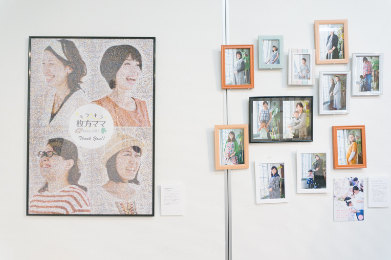 「キラキラ枚方ママ」はモザイクアートと定期的に開催しているマタニティカフェに来てくれた方の写真を展示。