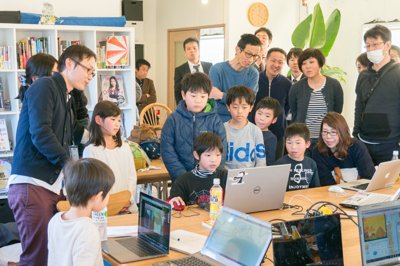 発表ではどういうプログラムを作ったのか・工夫したポイントなどを紹介していき、大人も子どもも釘付けになっていました。