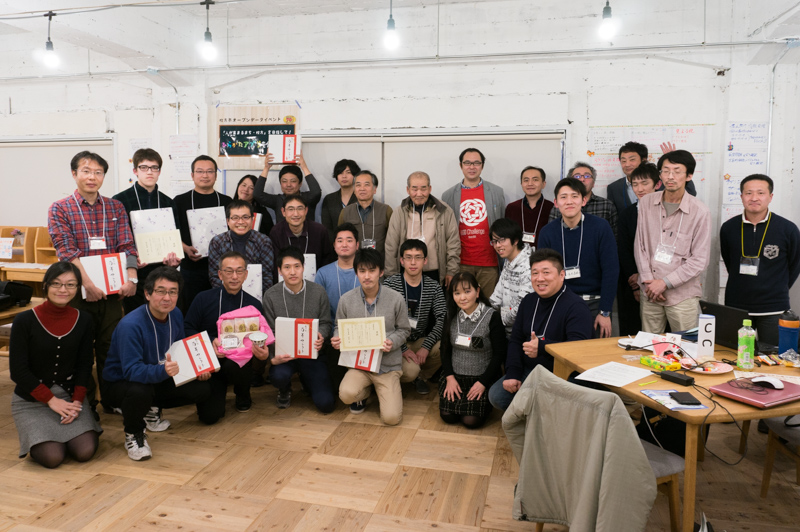 2日間にわたって行われた「ひらかたアプリを作ろう!」は、参加者の皆さんの笑顔の写真撮影で幕を下ろしました。