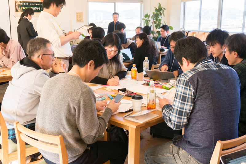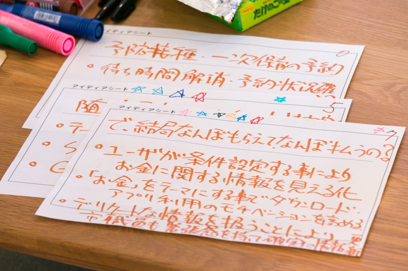 参加者同士のアイデア交換を一通り終えると、次は思い浮かんでいるアイデアをそれぞれシートに記入していきます。