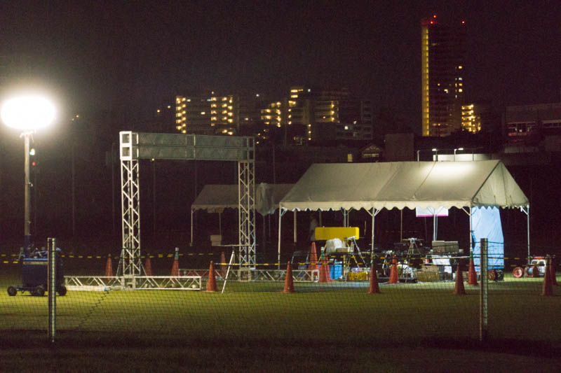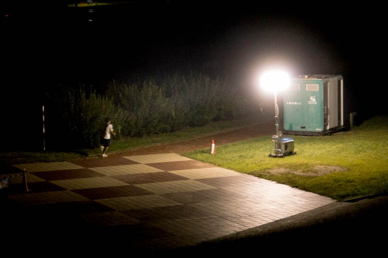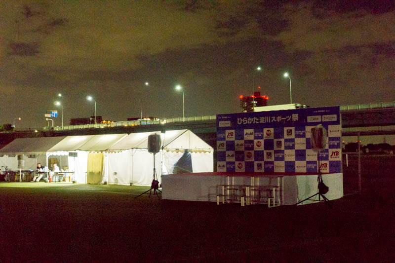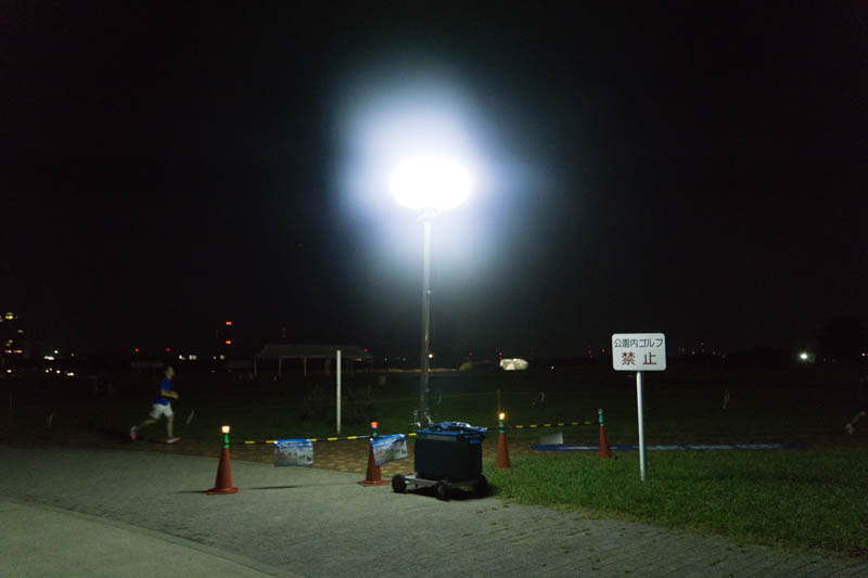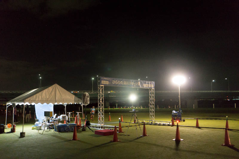淀川河川公園で行われている淀川24時間リレーマラソンの深夜1時ごろのようす