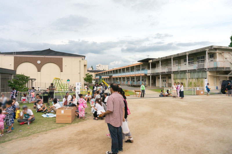 お祭りは17時からスタート。開成小学校のグラウンドで開催。