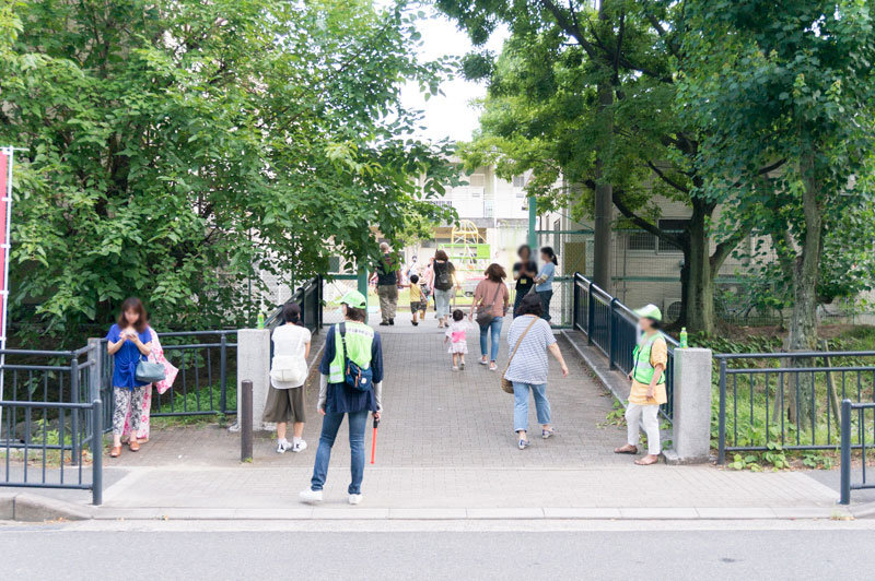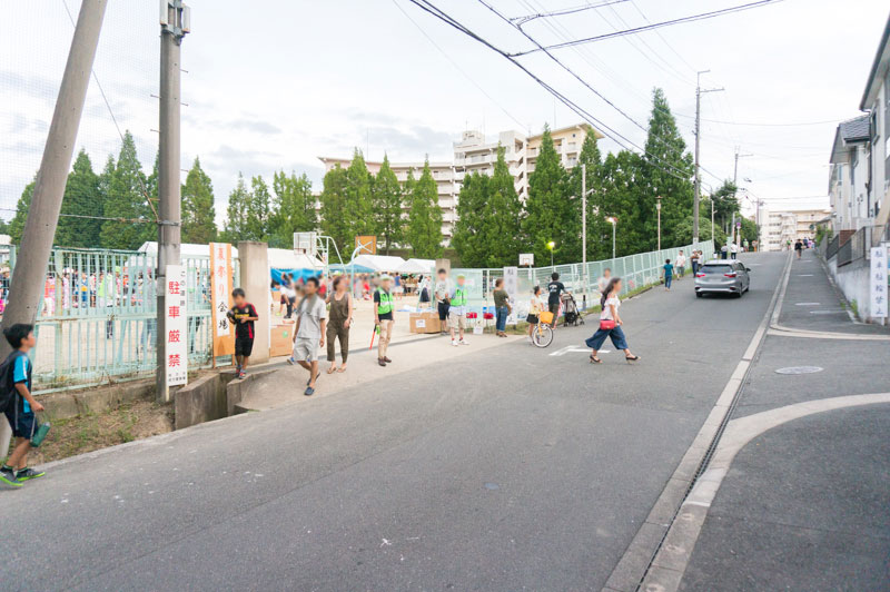 学校周辺にはお祭りに向かう人がぞろぞろ。