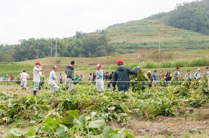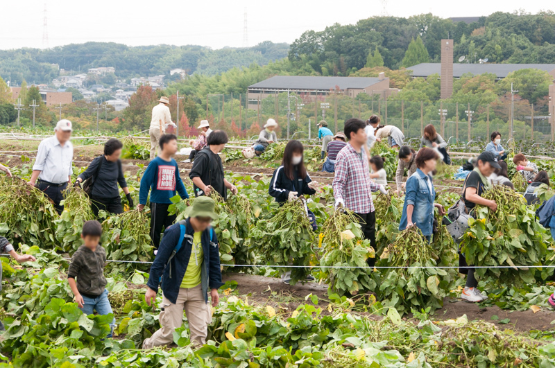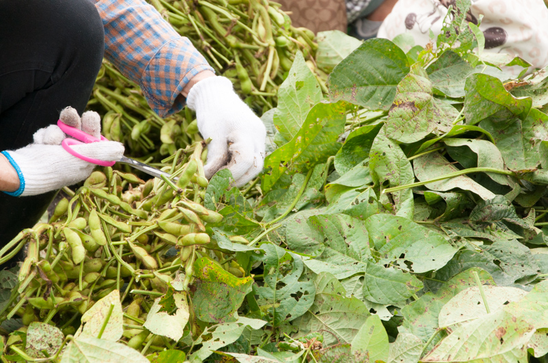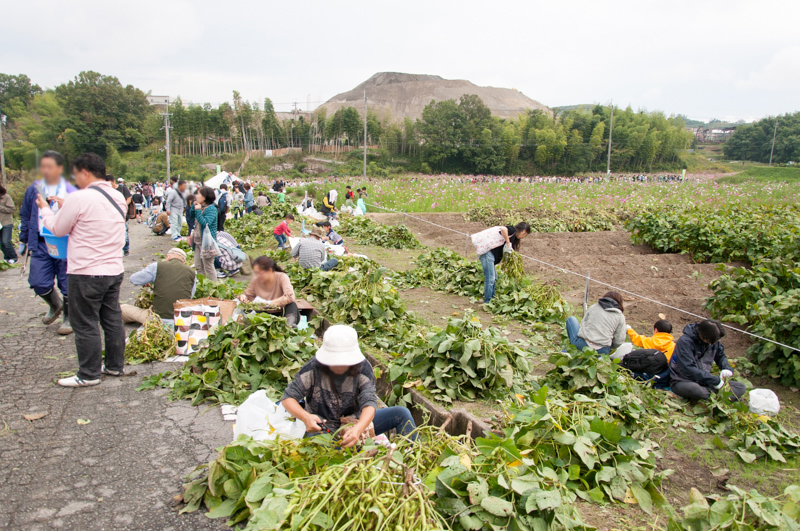 枝豆の畑は1つではなくて何箇所もあって、その行列は枝豆の木がなくなるまでず〜っと続いていました。初めてだとなかなか衝撃的でした。