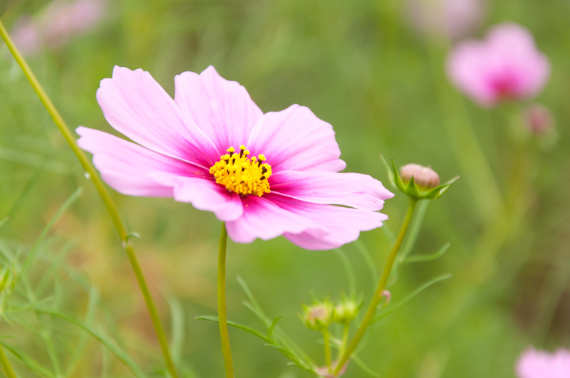 コスモスとひまわりの写真!!雨のあとだったので水滴がついてなおよし!でした。
