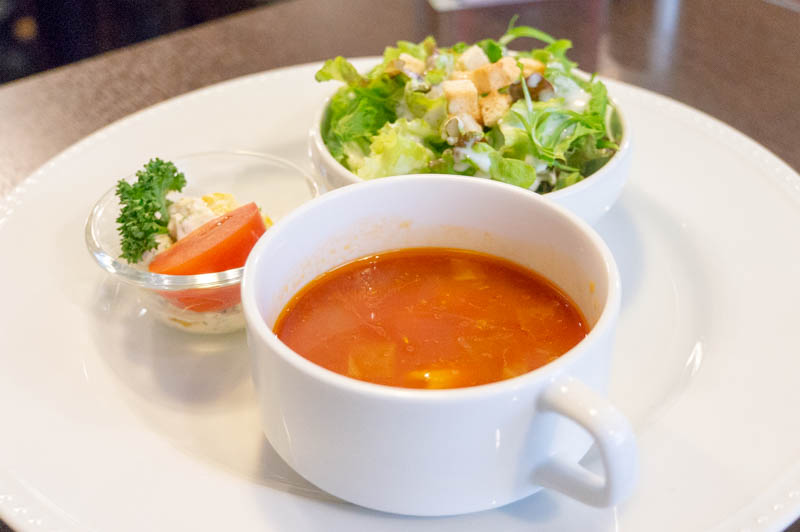 スープ・サラダなども付いてきます。この日のスープはミネストローネ。