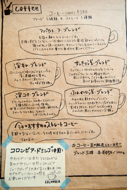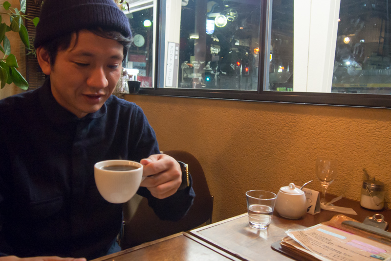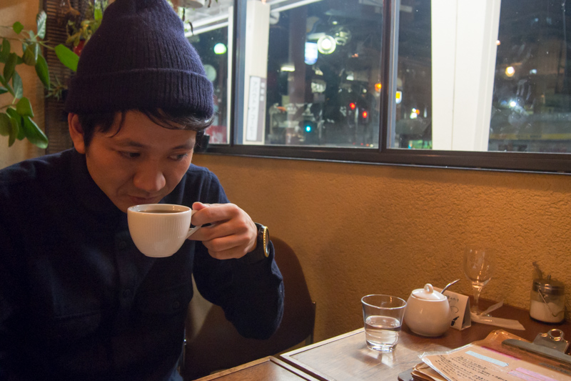 「コーヒーどう?ブレンドはこのお店を代表する“about a ブレンド”ってやつにしてんけど・・・って、飲んでる?」