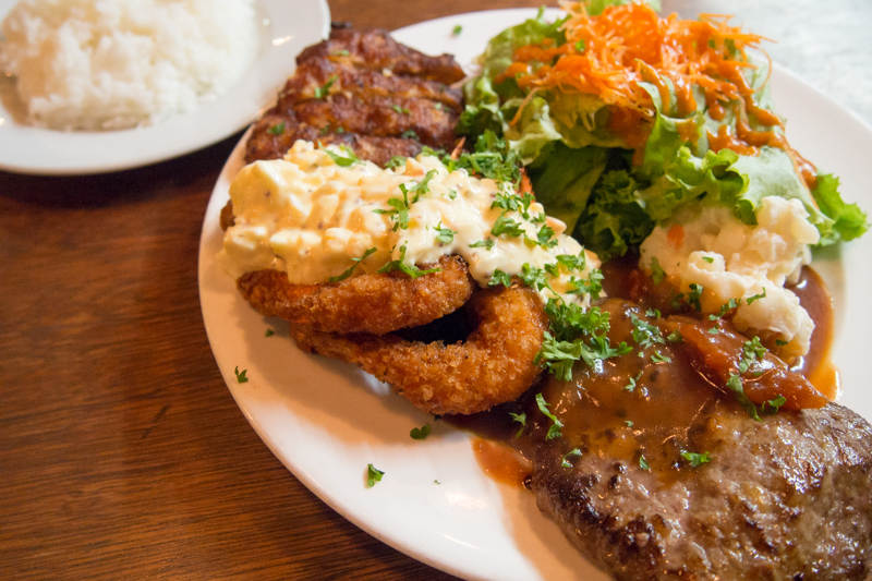 「このハンバーグはビーフハンバーグだけあって、どっしりとした肉感。めちゃウマっす!!」