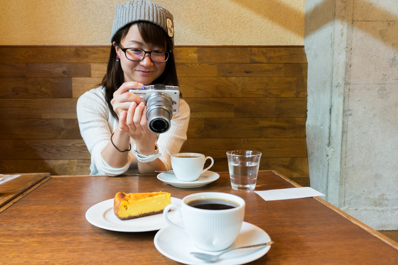 2人はホットコーヒーとかぼちゃが入った秋色パンプキンチーズケーキをチョイス。